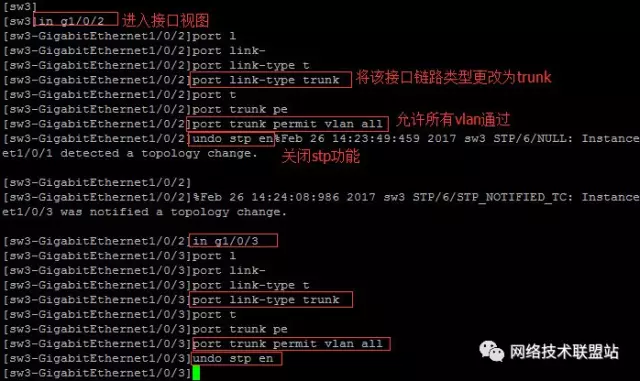 SW3(注意:在该设备上配置Smart Link一定要将设备之间相连的借口关闭stp功能,因为华三设备默认开启stp功能,与主机相连的则不必)