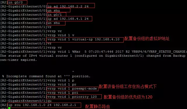 将R2的G0/1 shutdown查看主机之间可有中断,再查看vrrp的状态